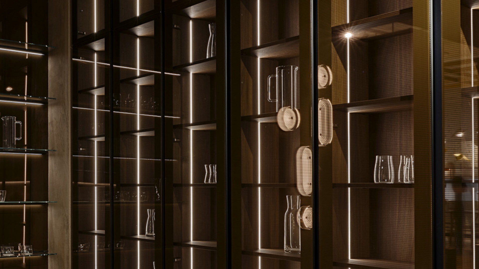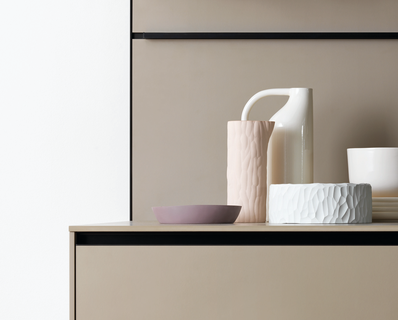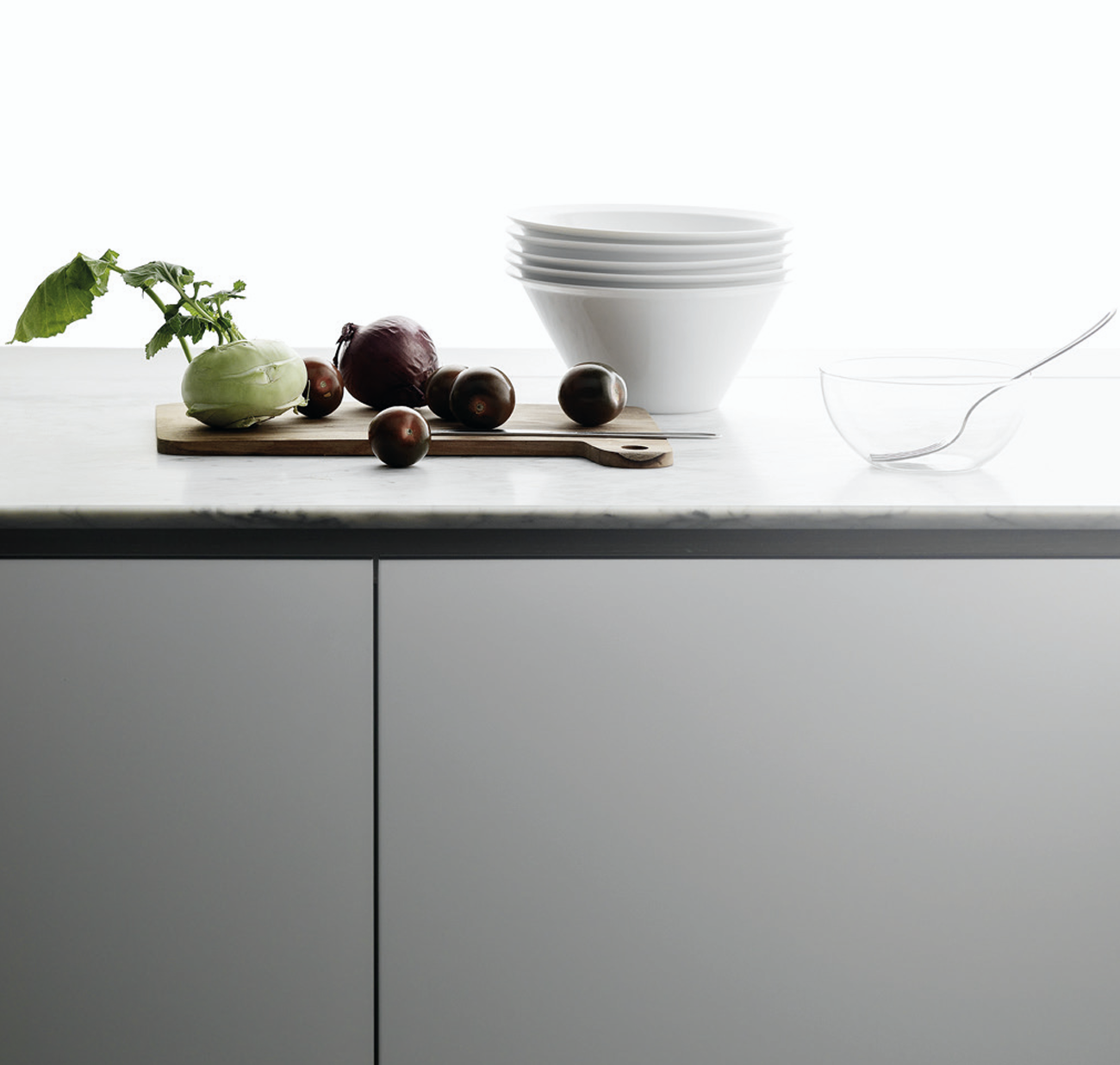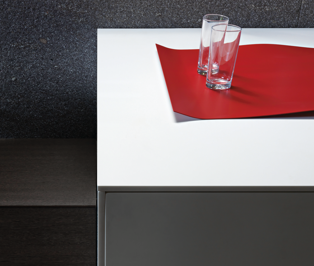 Tactile perceptions reveal ancestral, protective and reassuring emotions because they are more powerful and have a deeper impact than visual images. This is the feeling we want to convey through the smooth transparency of glass, the warmth of wooden kitchens, the versatility of laminate tops, the resistance of stone and the unique thrill aroused by steel cabinets.