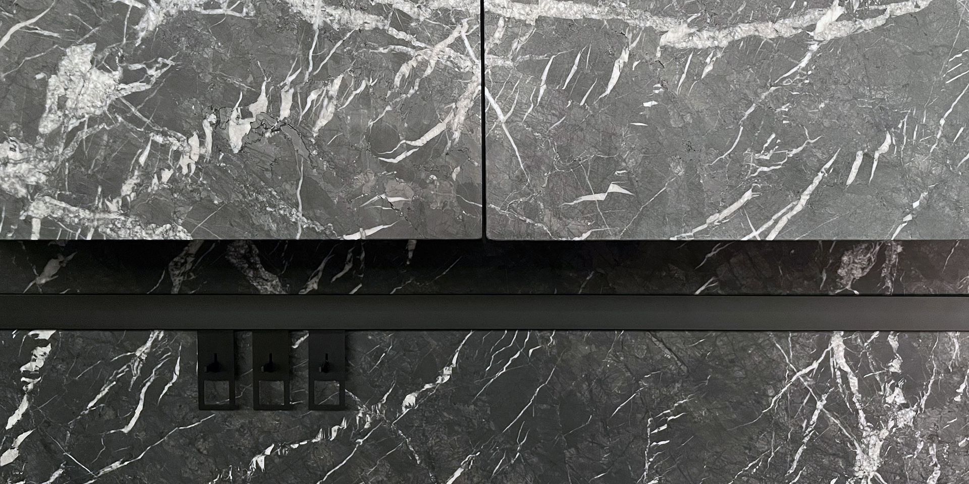 For all surfaces of natural stone kitchens, an acceptance check is carried out to ensure integrity and, for all adjacent faces, vein continuity where possible.